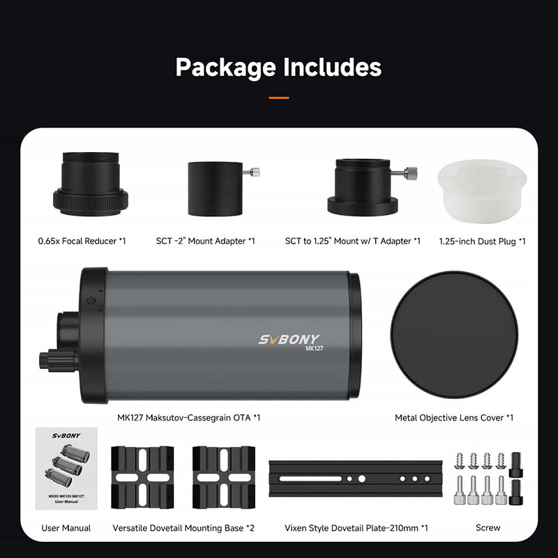 Explore the Solar System and beyond with the SVBONY MK127 Maksutov-Cassegrain Telescope, a high-performance optical instrument engineered for serious stargazers and astronomy enthusiasts. Whether you’re observing the Moon’s cratered surface, resolving the rings of Saturn, or capturing detailed views of Mars and Jupiter, the MK127 delivers sharp, contrast-rich imagery every time.