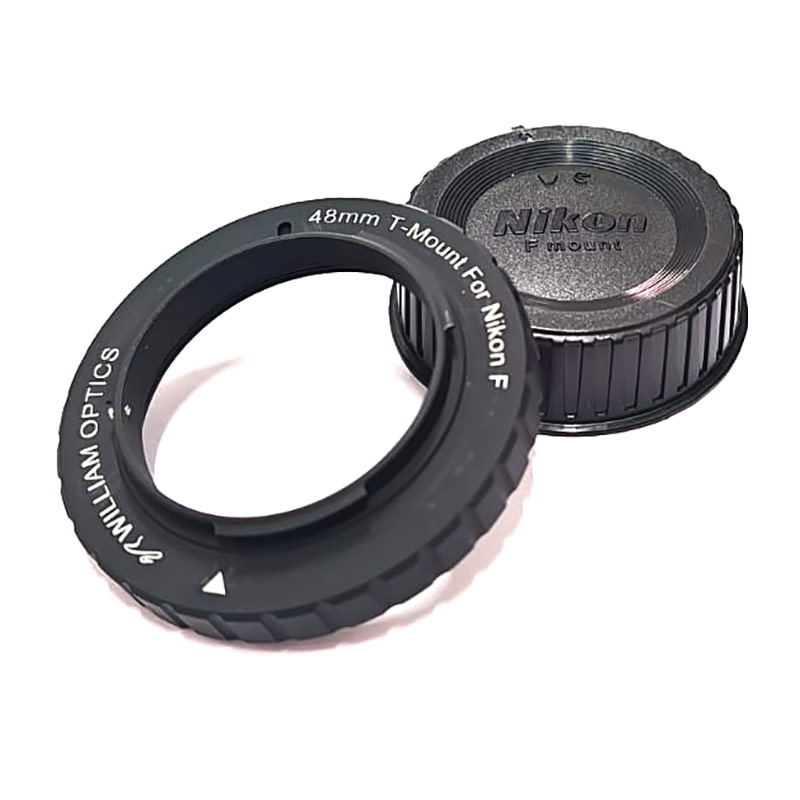 The William Optics M48 T-Mount for Nikon F is a precision-engineered adapter that lets you connect Nikon F-mount DSLR cameras to any telescope accessory with a standard 48 mm T-thread. Designed for astrophotography and deep-sky imaging, this rugged metal T-mount ensures a secure, vibration-free connection between your Nikon camera and focusers, flatteners, or reducers.