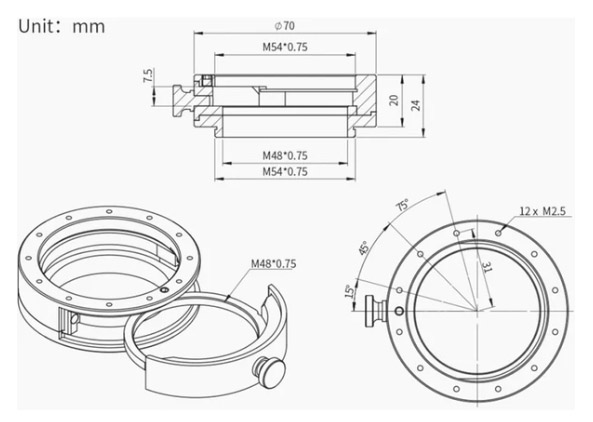 M54 * 0.75 male (external) thread (camera side)